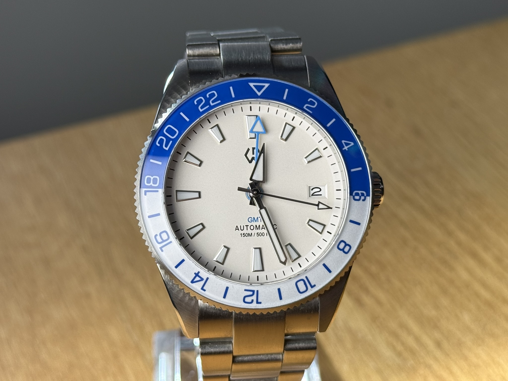 El Wishdoit WSD-9007 es un reloj GMT automático que sorprende por su impresionante lumen, su estética fresca y veraniega y un conjunto técnico muy sólido para su rango de precio. Con calibre Seiko NH34, cristal de zafiro y una cuidada construcción en acero inoxidable, se presenta como una opción muy interesante para quienes buscan un GMT versátil sin gastar una fortuna.